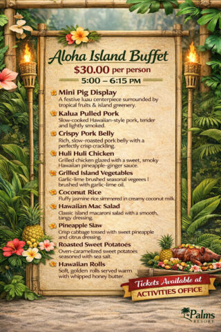 SATURDAY – ALOHA FEST BUFFET DINNER ….