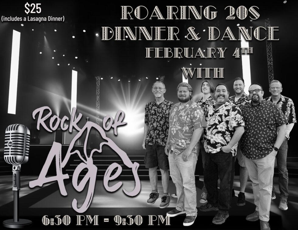 Enjoy a delicious lasagna dinner served at 5:00 PM, then hit the dance floor from 6:30 to 9:30 PM to the music of Rock and Ages.