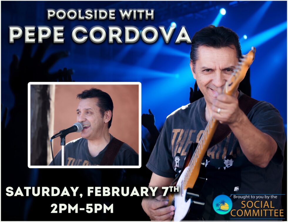 How fortunate we are! Pepe will be playing poolside on Saturday, February 7th. As one of the Palms’ favorite entertainers, we’re delighted to have him back for your enjoyment. Be sure to mark your calendar—you won’t want to miss it!