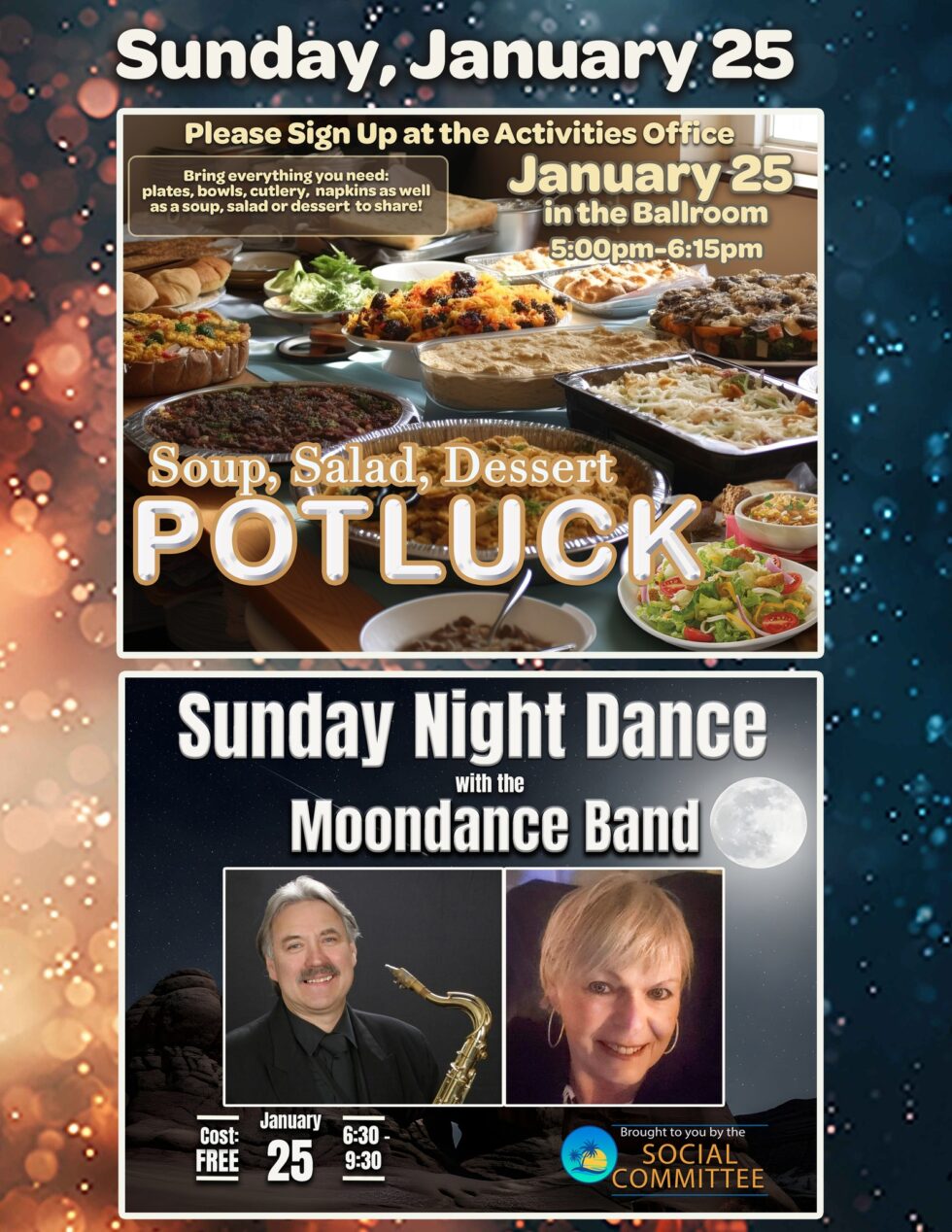 It’s a night of great food, great music, and vintage fun you won’t want to miss—mark your calendar and join us for a roaring good time! Your tickets will be available in the Activities Office, Wednesday January 21.