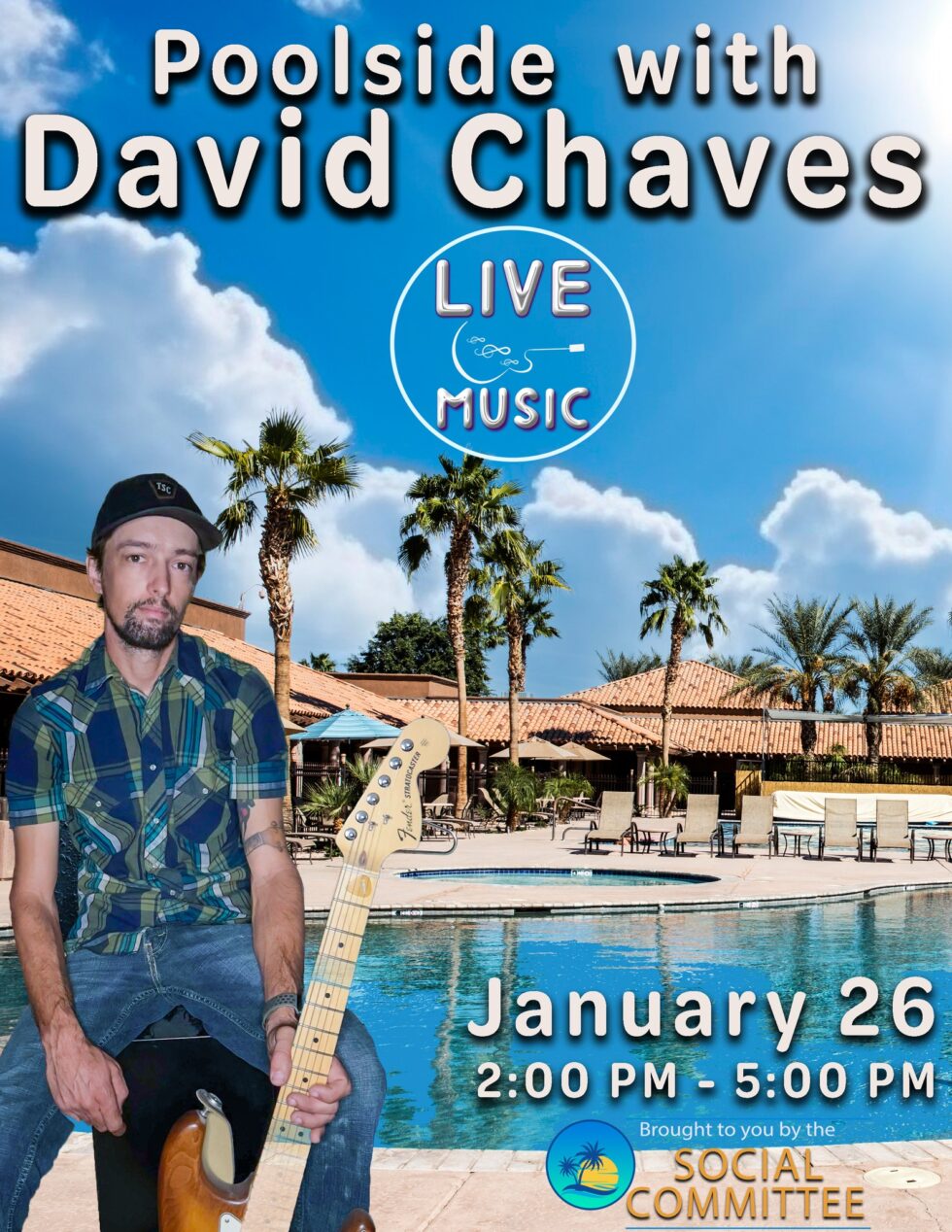 Another great time is planned just for you! Come and enjoy the music of Brandon Catron right here at our pool on February 9, from 2:00 pm to 5:00 pm. It’s sure to be a fantastic afternoon filled with great music—be sure to mark your calendar!